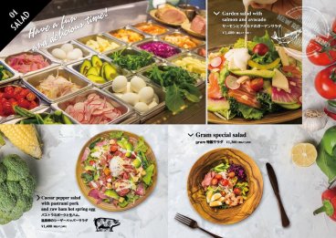 野菜をふんだんに使った料理は見た目にも楽しんでもらえるように考え作っています。料理だけでなく、季節のケーキ・ジェラートなどの美味しいザートも多数ご用意しています。ドリンクも種類豊富でTEA THEgram(紅茶飲み放題)やgramでしか味わえないこだわりドリンクも☆